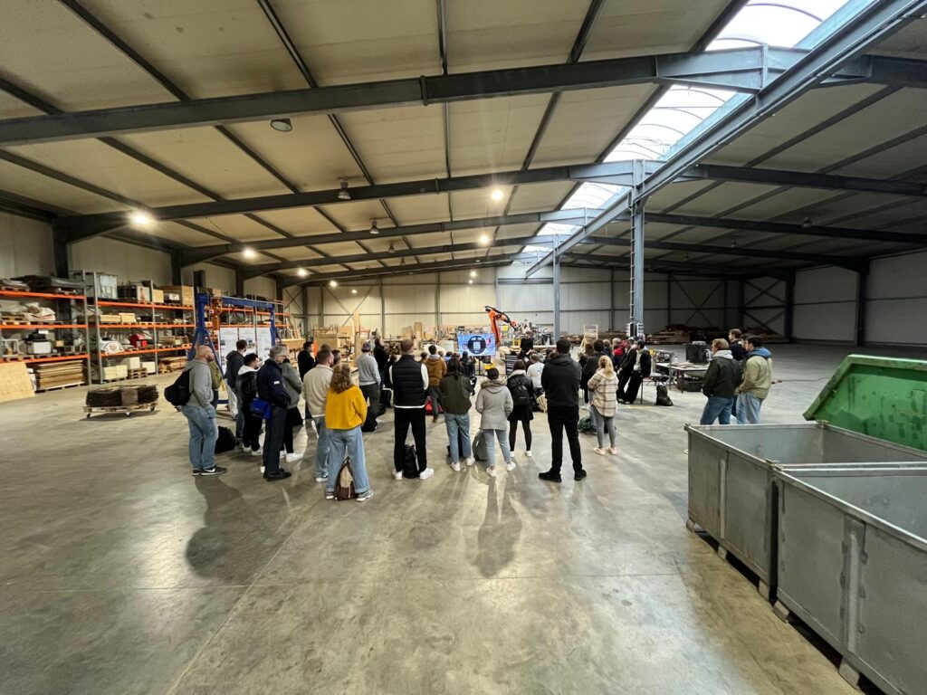 Am 26. September 2025 besuchten drei Bautechnikerklassen der Heinrich-Hübsch-Schule eine Veranstaltung des Karlsruher Instituts für Technologie (KIT), die in einer Lagerhalle im Karlsruher Stadtteil Grünwinkel stattfand. Die Schüler:innen erhielten dort spannende Einblicke in ein zukunftsweisendes Thema: das zirkuläre Bauen – präsentiert von Herrn Fischer, einem Experten des KIT.