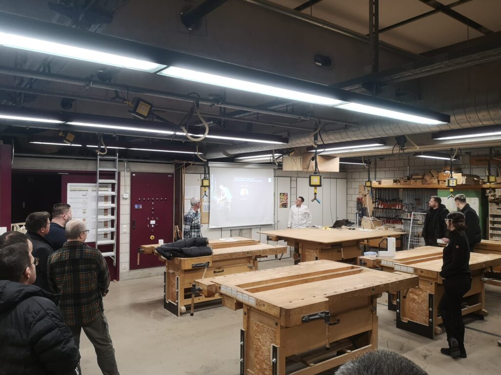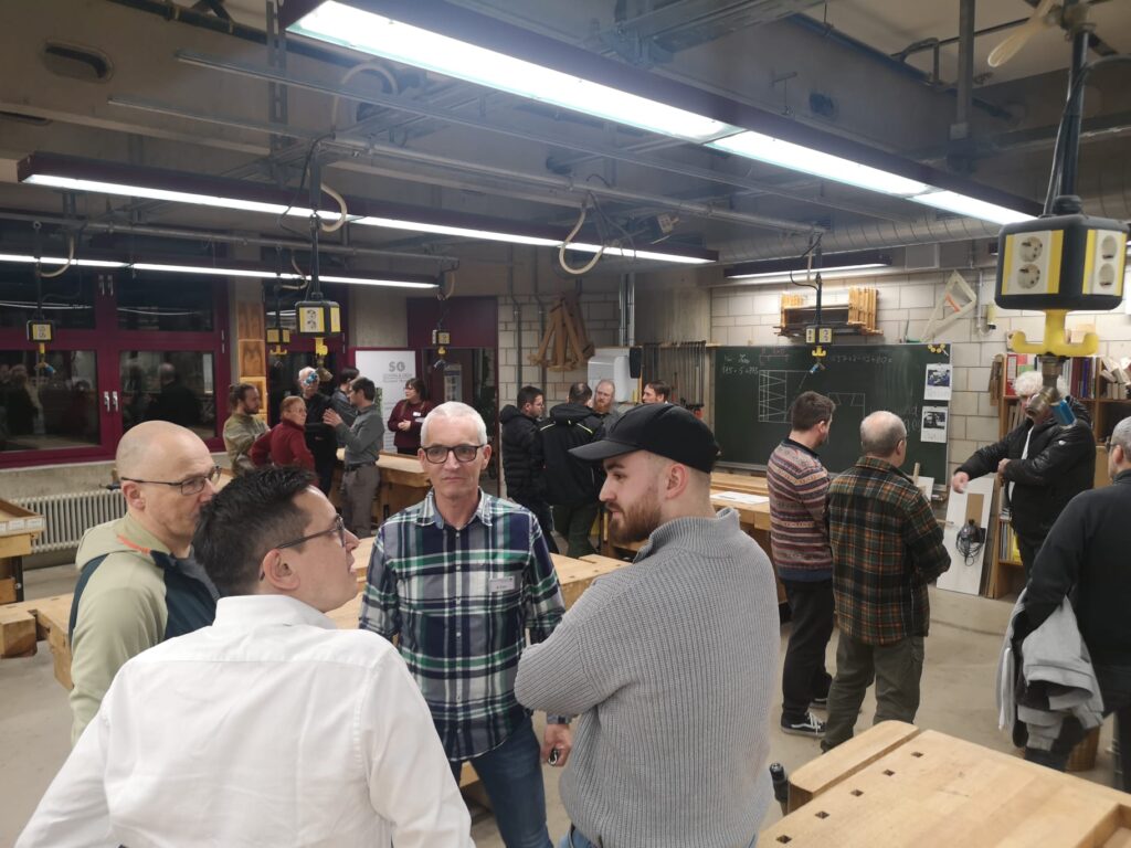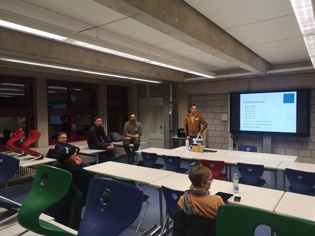 In den Werkstätten und Fachräumen entwickelten sich zahlreiche Gespräche zu den unterschiedlichen Ausbildungsberufen der Schule. Dabei standen nicht nur fachliche Inhalte und aktuelle Entwicklungen in der Ausbildung im Mittelpunkt, sondern auch organisatorische und pädagogische Fragestellungen. Der direkte Austausch zwischen Ausbildern und Ausbilderinnen mit den Lehrkräften wurde intensiv genutzt. Auch die Schulleitung, das Beratungsteam und die Erasmus+ Ansprechpartner waren während des gesamten Abends präsent und standen für Gespräche, Anregungen und Rückmeldungen zur Verfügung.