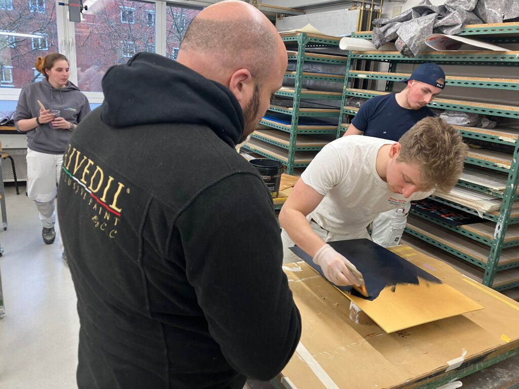 Die Meisterklasse Farbe hatte am Mittwoch und Donnerstag ein Kreativseminar, bei dem Firma Rivedil Paint spannend und handlungsorientiert Möglichkeiten der Oberflächengestaltung zeigte.