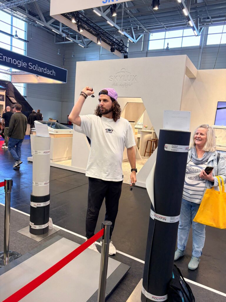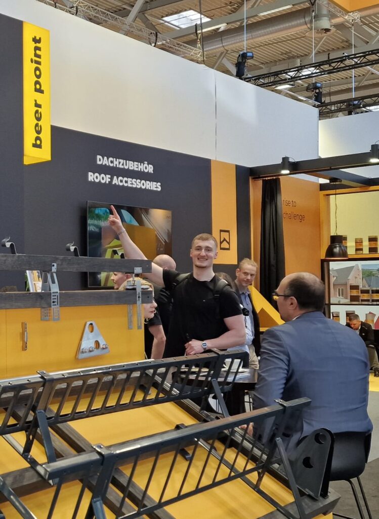 Am Mittwoch starteten wir früh in Karlsruhe und kamen gut gelaunt auf dem Messegelände an. Direkt beim Betreten der Hallen war klar: Hier gibt es unglaublich viel zu entdecken! Ob große Dachsystem-Hersteller, Werkzeuge für den Holzbau oder digitale Planungstechnologien – überall konnte man Fachwissen aufschnappen und direkt ausprobieren.