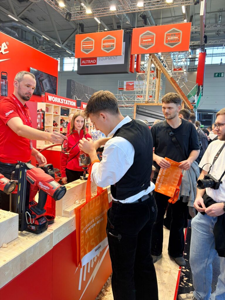 Anschließend fuhren wir zurück zur Messe, um den zweiten Messetag voll auszukosten. Wir vertieften einige Gespräche, besuchten weitere Stände und konnten durch praxisnahe Vorführungen und Direktkontakte wertvolle Einblicke gewinnen – sei es in neue Holzbautechniken oder smarte Werkzeuge für die Baustelle.