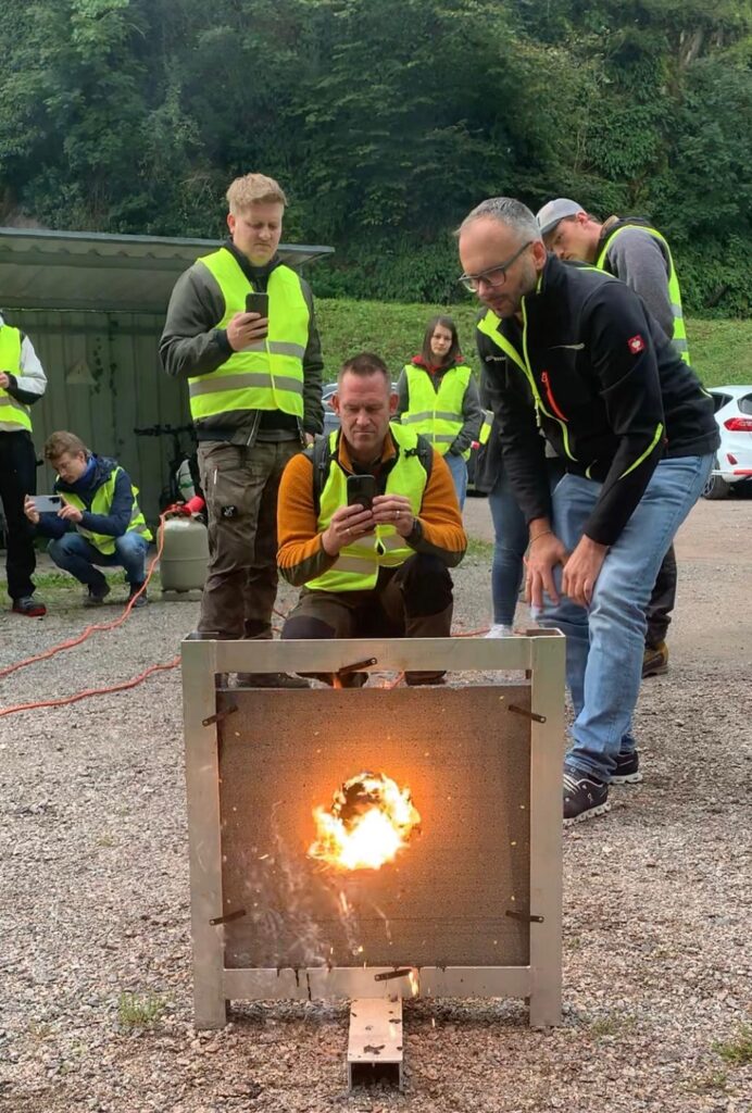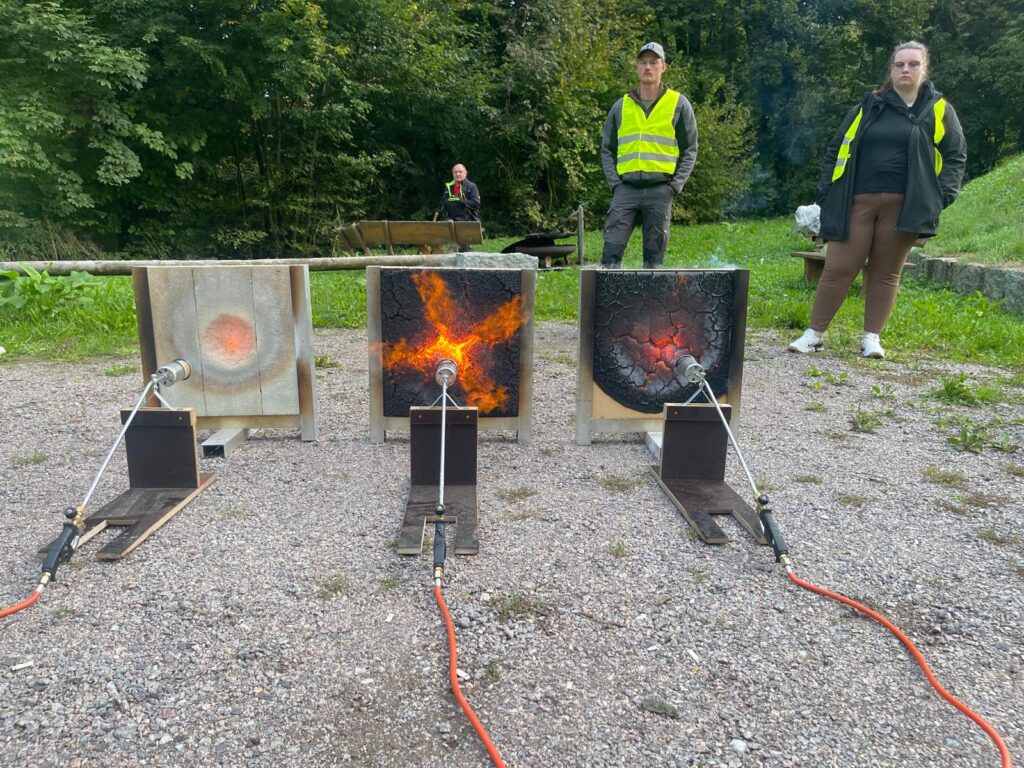 Auf dem ersten und letzten Foto seht ihr Brandtests, die bei der Firma Gutex durchgeführt wurden!